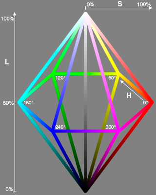 | H | Hue | 0° | 360° |