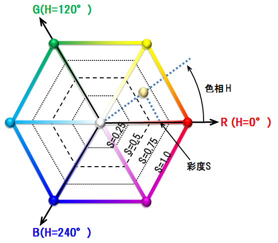 Hは360段階(°)、SとVは100段階(%)で表す